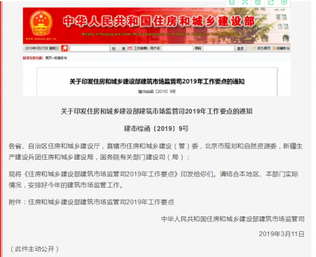 住建部建筑市場監(jiān)管司《2019年工作要點(diǎn)》出臺(tái)!